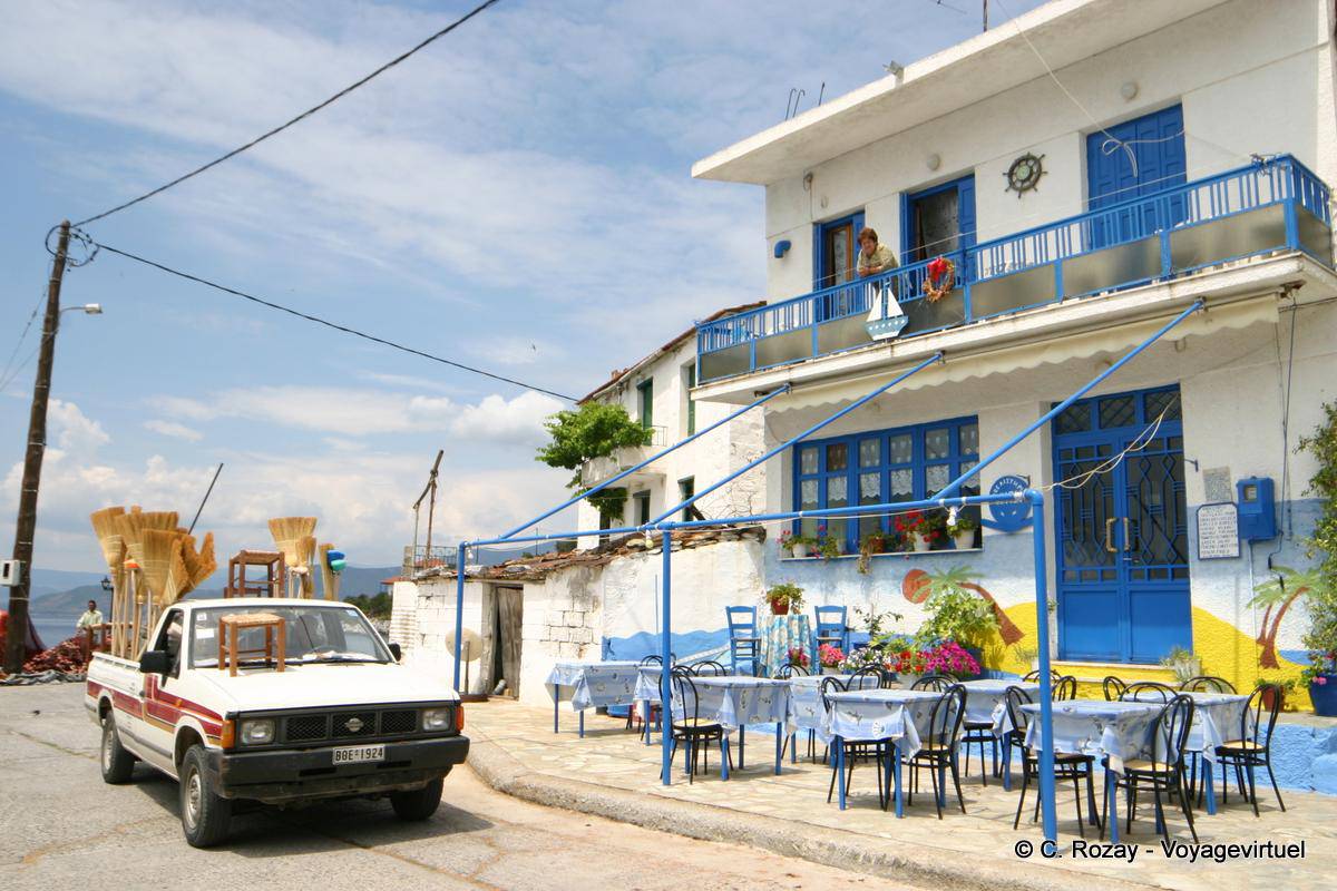 [Click on the image to see it in large size] Terrasse et marchand de balais Agia Kyriaki Greece pelion-trikeri-agia-kyriaki-81... - 14 / 20 (5 votes). Please rate this image =>Write a comment. Your text will appear here.