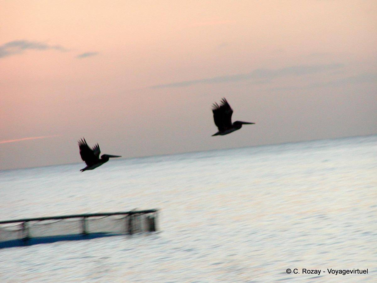 [Click on the image to see it in large size] Pelicans en vol, Martinique martinique22 - 14 / 20 (6 votes). Please rate this image =>Write a comment. Your text will appear here.