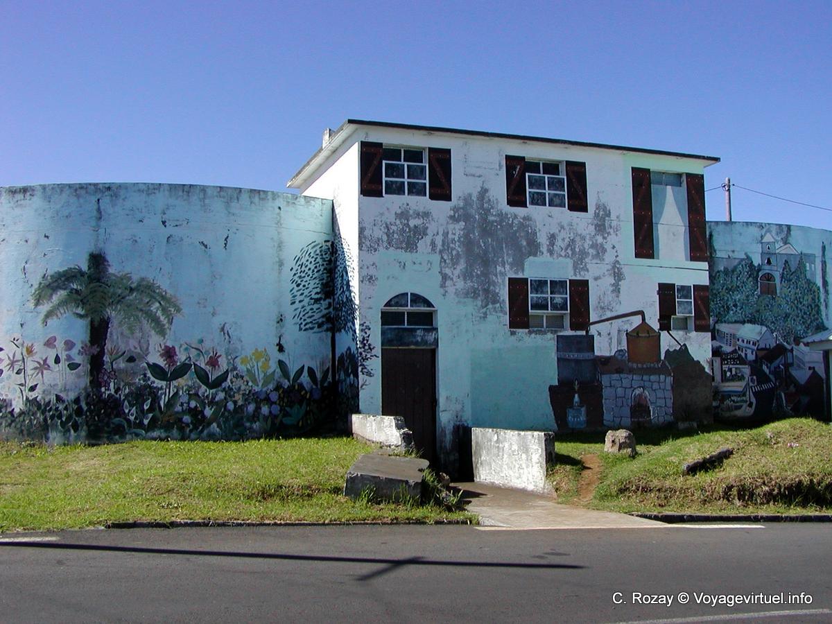 [Click on the image to see it in large size] image11 - 15 / 20 (12 votes). Please rate this image =>Write a comment. Avez-vous remarqué l'alambic peint sur le mur de cette maison, ainsi que l'église à droite ? (Simo)