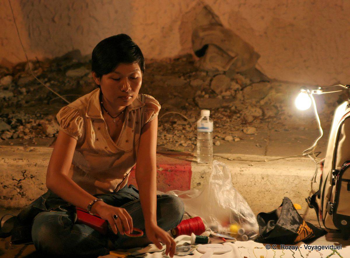 - Etal de fortune au bord du trottoir ; le marché de nuit est éclairé grèce à des branchements électriques tout à fait dans les normes ! (Claude)